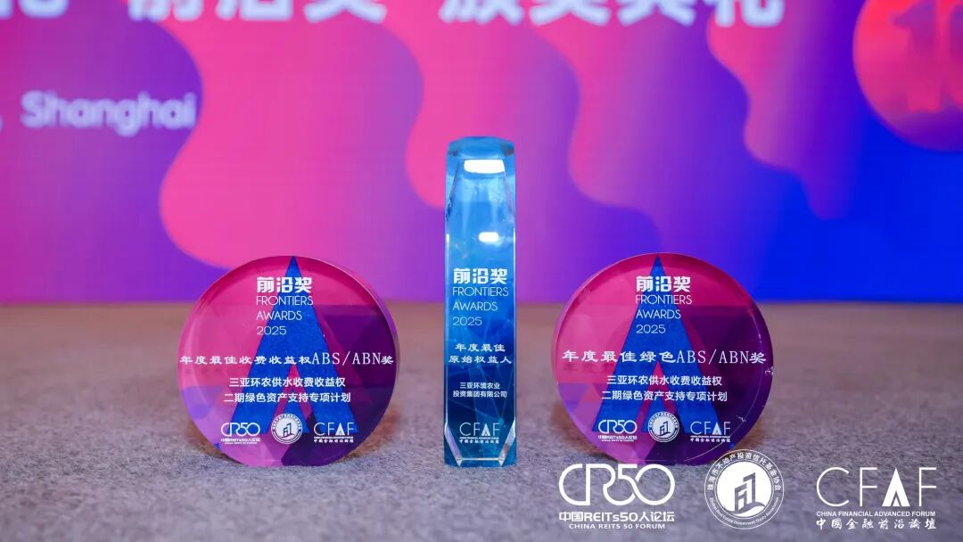 11月13日,在第十屆不動(dòng)產(chǎn)證券化合作發(fā)展大會(huì)暨2025不動(dòng)產(chǎn)證券化“前沿獎(jiǎng)”頒獎(jiǎng)典禮上,三亞環(huán)農(nóng)集團(tuán)憑借“綠色供水收費(fèi)收益權(quán)ABS項(xiàng)目”一舉斬獲三項(xiàng)核心榮譽(yù),成為當(dāng)晚備受矚目的焦點(diǎn)。集團(tuán)總會(huì)計(jì)師孫建華代表公司上臺(tái)領(lǐng)獎(jiǎng)。